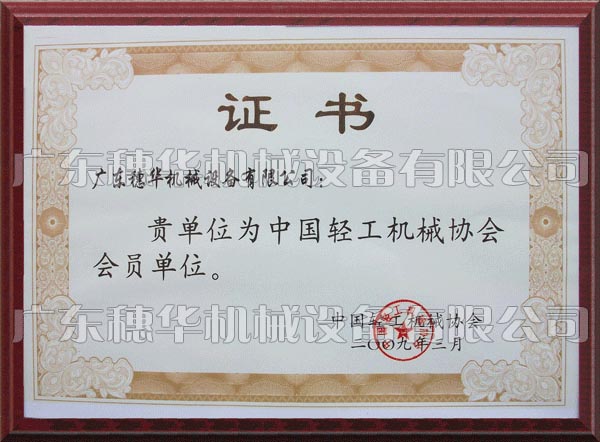 我國輕工機(jī)械協(xié)會(huì)會(huì)員證書