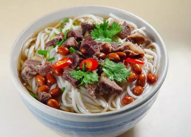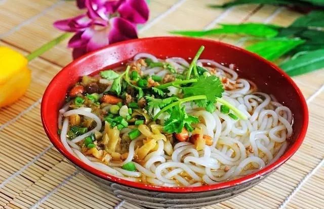 過(guò)橋米線是云南滇南地區(qū)特有的漢族小吃,屬滇菜系。過(guò)橋米線起源于蒙自地區(qū)。過(guò)橋米線湯是用大骨、老母雞、云南宣威火腿經(jīng)長(zhǎng)時(shí)間熬煮而成的。過(guò)橋米線由四部分組成:一是湯料覆蓋有一層滾油;二是佐料,有油辣子、味精、胡椒、鹽;三是主料,有生的豬里脊肉片、雞脯肉片、烏魚(yú)片,以及用水過(guò)五成熟的豬腰片、肚頭片、水發(fā)魷魚(yú)片;輔料有來(lái)過(guò)的豌豆尖、韭菜,以及芫荽、蔥絲、草芽絲、姜絲、玉蘭片、氽過(guò)的豆腐皮;四是主食,即用水略燙過(guò)的米線。鵝油封面,湯汁滾燙,但不冒熱氣。過(guò)橋米線已被列入非物質(zhì)文化遺產(chǎn)。